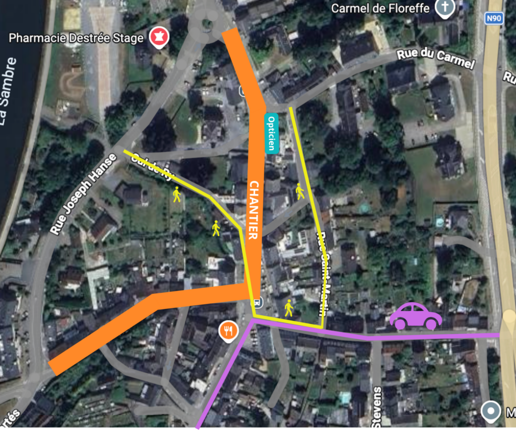À partir du mardi 7 avril et jusqu’au vendredi 10 juillet 2026, une nouvelle phase du chantier débute dans le centre de Floreffe. Des adaptations de circulation sont prévues.